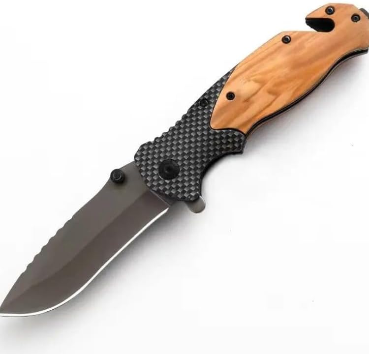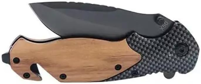Good Quality X50 Custom Logo Olive Wood Handle Folding Titanium Coated Survival Camping Wood Pocket Knife for Outdoor Rescue