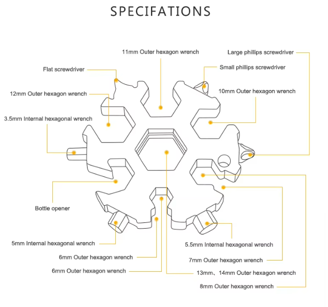 16-in-1 Snowflake Multi Tool Stainless Steel Snowflake Bottle Opener Screwdriver and Wrench Durable Great Christmas Gift