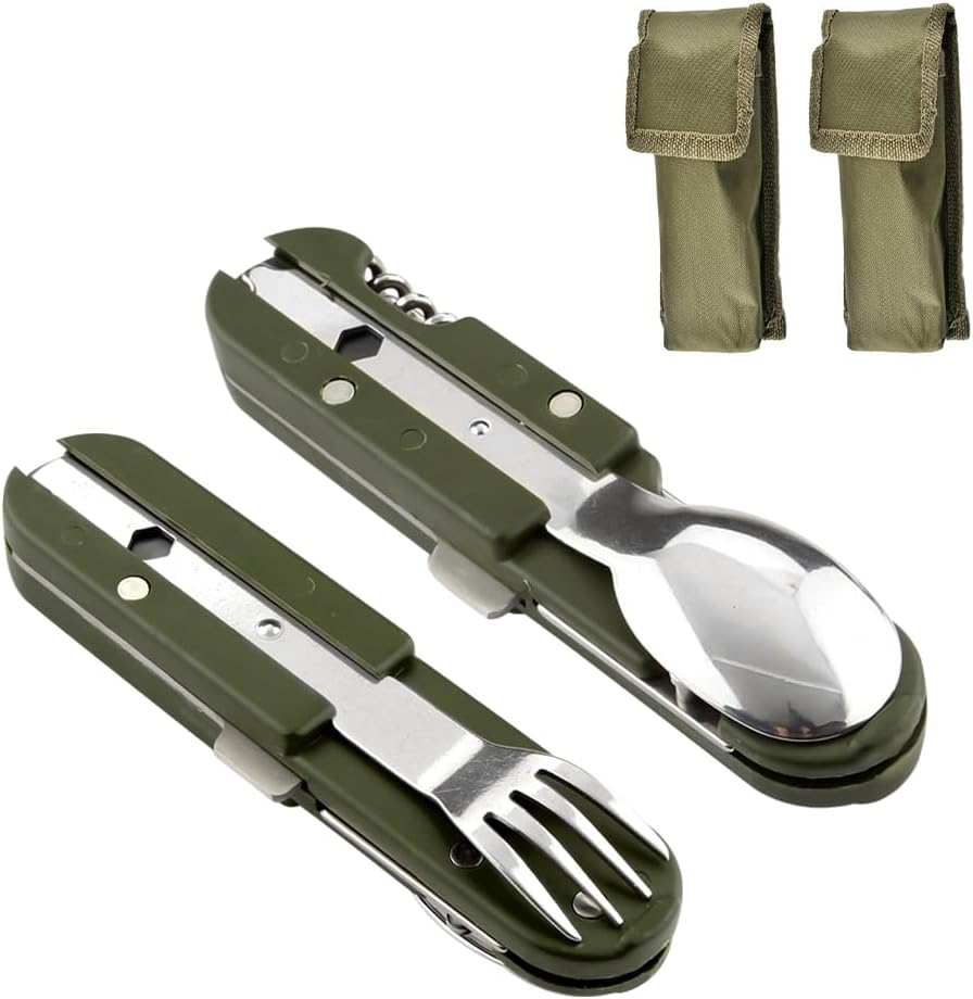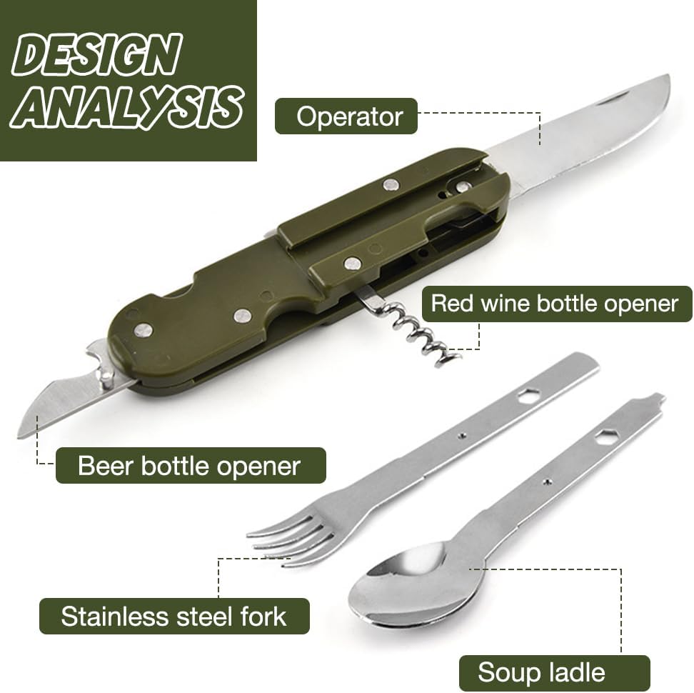 Camping Folding Knife Fork Spoon Combination Stainless Steel Tableware Knife Fork Multifunctional Knife Disassembly Tableware
