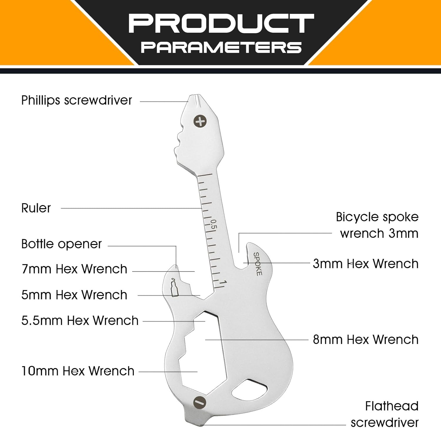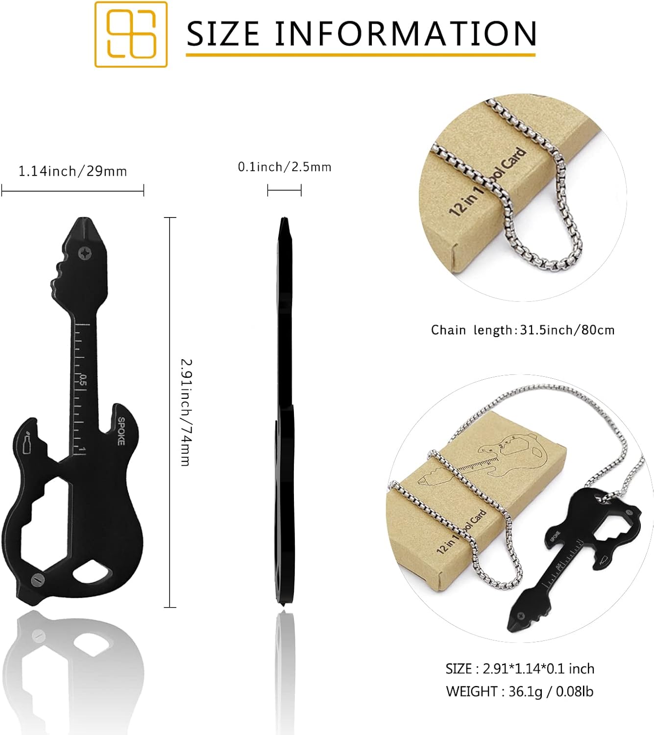 Guitar Keychain Multitool Pocket Tool Wallet Tool 12 in 1 Bottle Opener Keychain