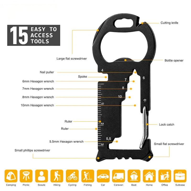Custom Wrench Screw Ruler Bottle Opener 15 in 1 EDC Multi-Tool Keychain Multi Tool Key