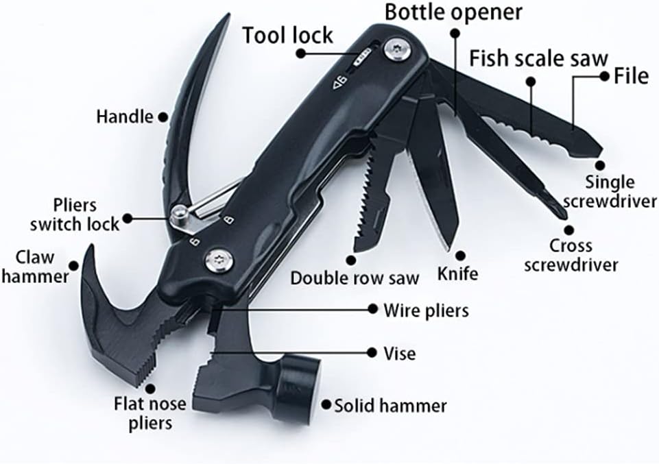 Outdoor All-In-One Multifunctional Sheep Horn Hammer, Convenient Camping Combination Small Tool, Nail Hammer, Stainless Steel Multifunctional Knife Pliers